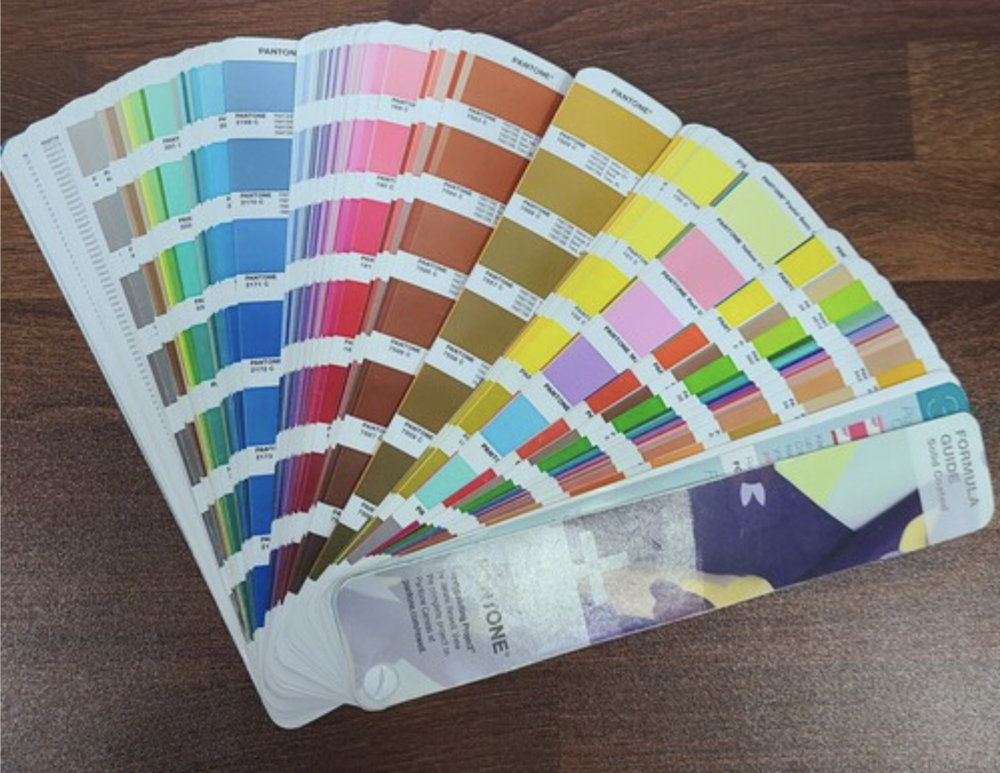 뱃지에 들어가는 안료는 기계나 이미 시중에서 판매되는 정해진 색으로 채워지는 것이 아닌, 사람이 직접 눈으로 색을 맞추고, 색제조를 하여 만들어집니다. 따라서 모니터의 색과 같은 완벽히 똑같은 색으로 채워지는 것은 불가능하며, 다소 색감이 달라질 수 있습니다. 에나멜 색 제조과정을 보면, 작업자가 모니터가 아닌, 팬톤 컬러 차트(아래 사진)를 보고 여러 색을 섞어 가장 비슷한 색으로 제조를 하게됩니다. 실제 뱃지의 색은 아래의 팬톤 컬러 차트 상의 색과 가장 비슷합니다. 작업자가 여러 명이고, 도금이나 그림자 등의 영향을 받는 경우가 있어, 사실 모니터의 색감과 완벽히 동일한 뱃지를 제조하는 것은 거의 불가능합니다. 수제작 공정이 많은 뱃지의 특성상, 모든 뱃지 제작회사들이 공통적으로 가지고 있는 문제입니다. 이러한 이유로 처음 주문하셨던 뱃지와 재제작한 뱃지의 색감이 다소 달라질 수 있습니다. 잘못된 영역에 색이 들어간 경우에는 재제작이 가능하오나, 색감 관련한 부분은 파본으로 보지 않습니다.